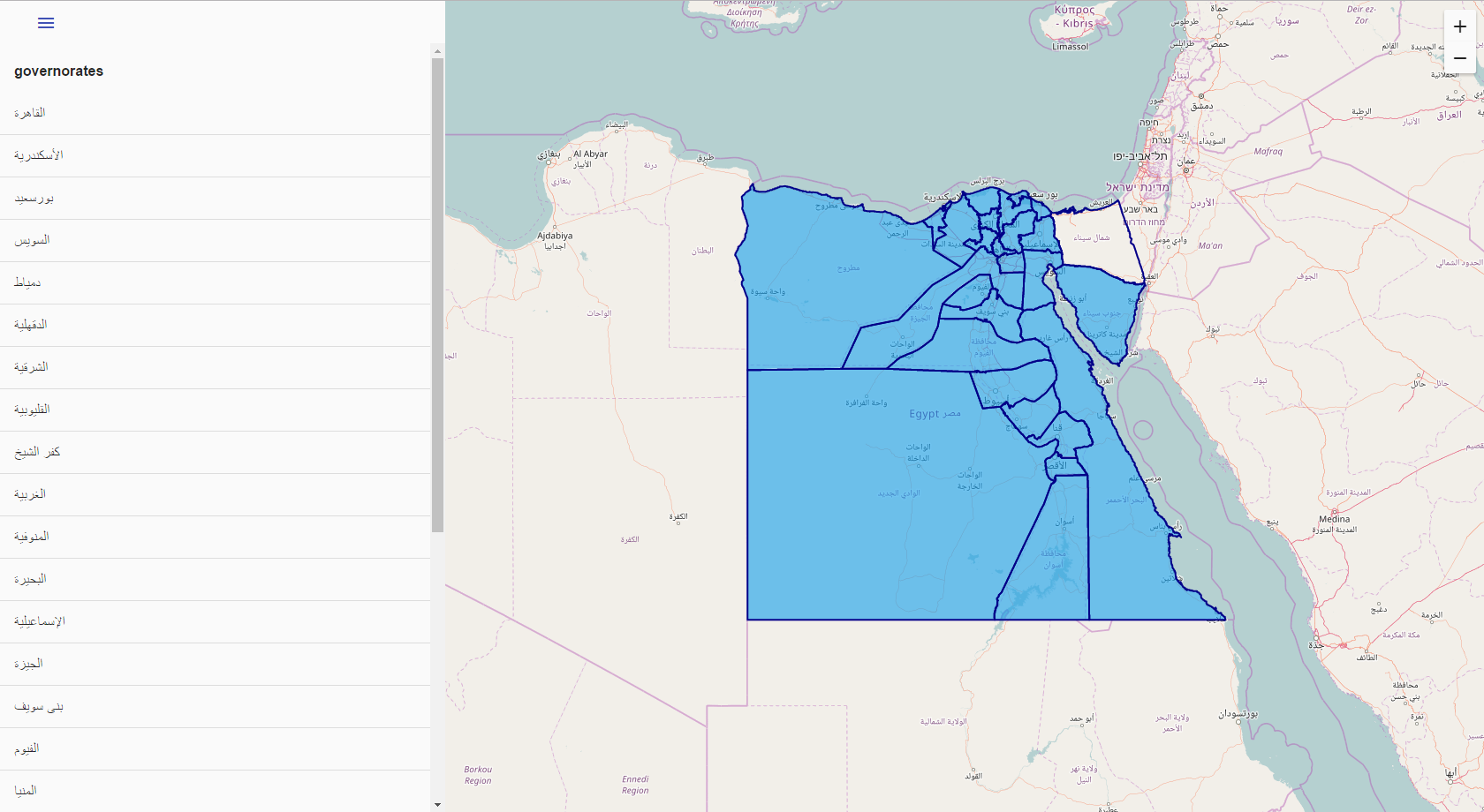 Map and configurable feature list side by side. Map and feature list are connected in zoom and pan. Use for store locations or similar apps..